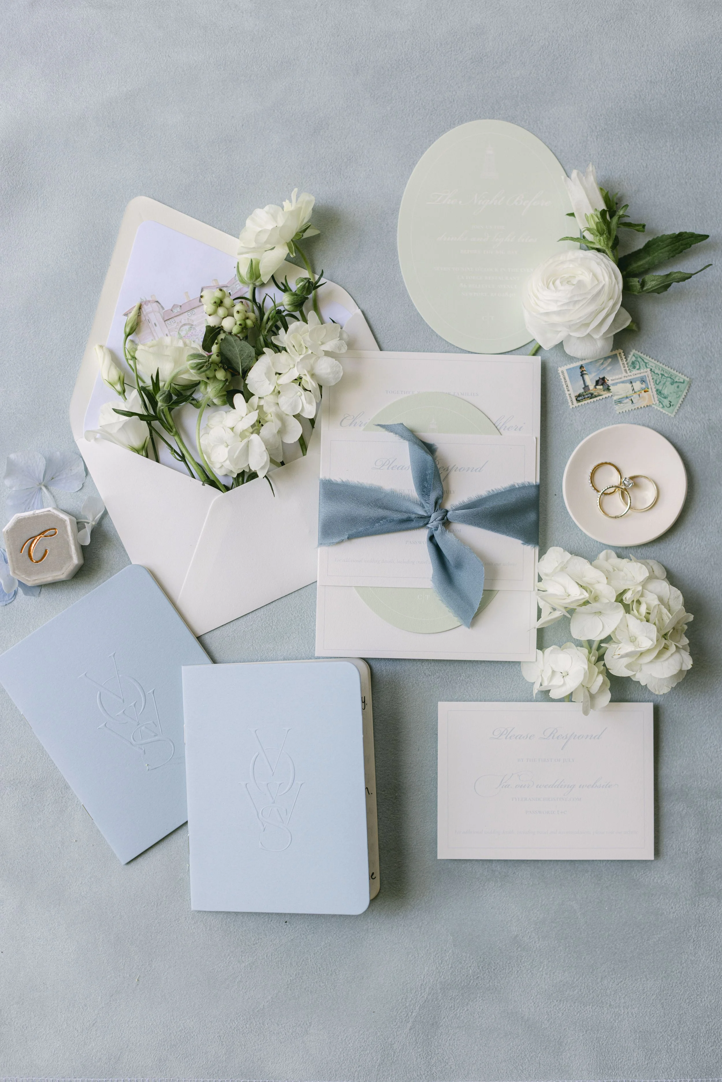Wax seals, vellum wraps, die-cut shapes, envelope liners, ribbon, and other finishing details. Your suite can be kept simple or built out with layered elements depending on your preferences.