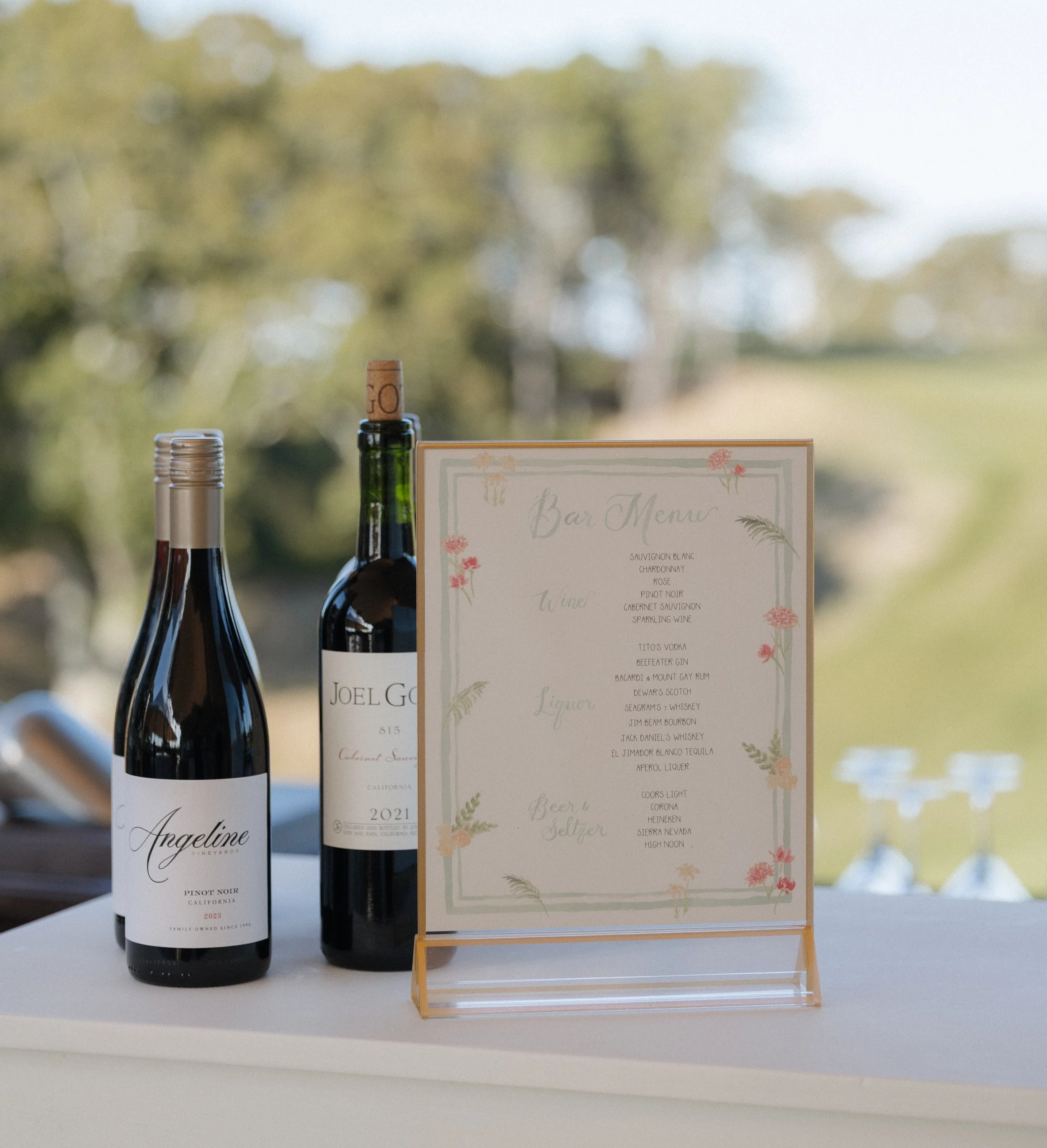 Menus, programs, seating charts, welcome signs, bar menus, signature drink signs, and other day-of pieces designed to coordinate with your invitation suite and create a cohesive look throughout your wedding.